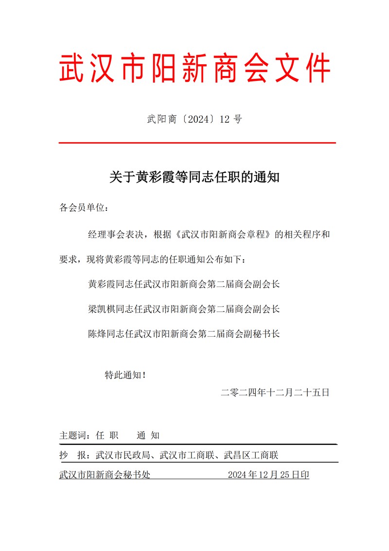 关于黄彩霞等同志任职的通知