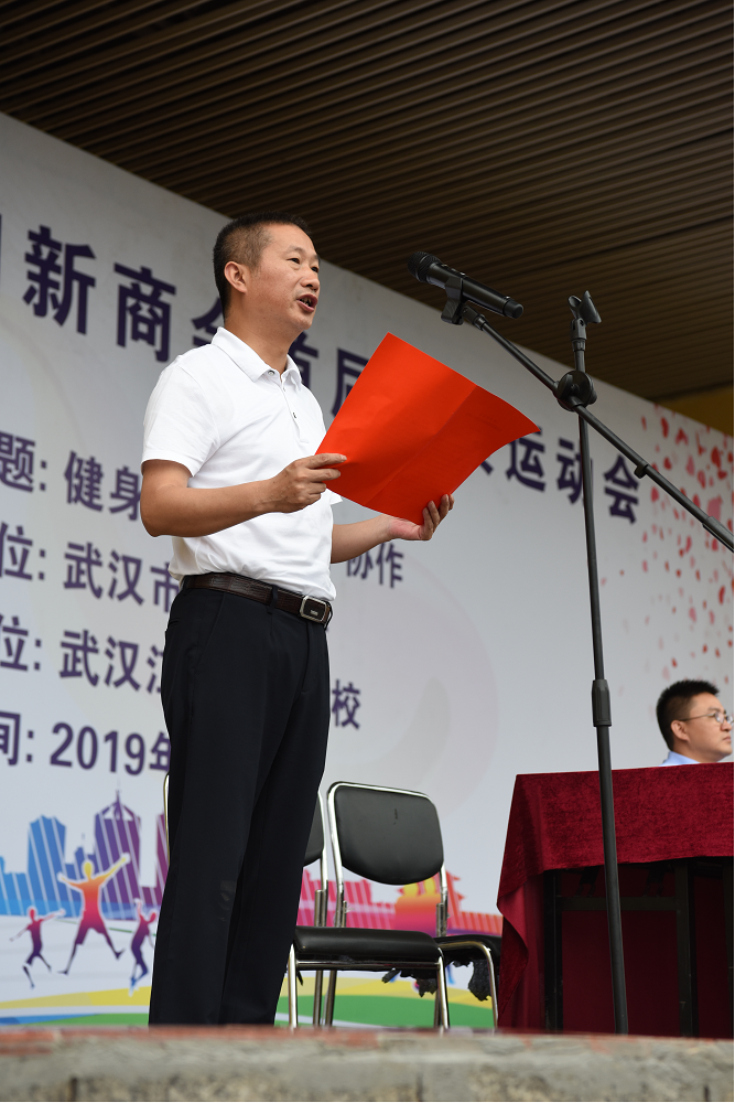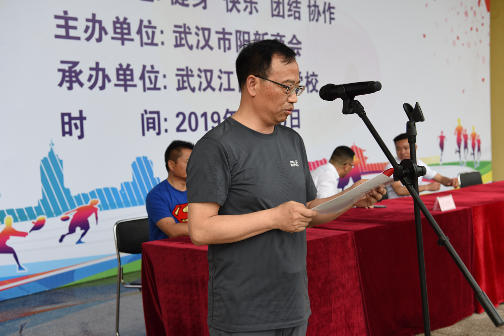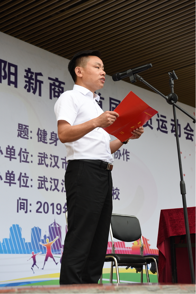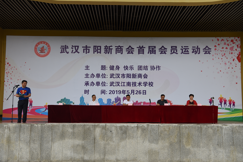 2019-05-28 07:55 查看: 青春五月,激情飞扬,风雨助兴,凯歌嘹亮。5月26日武汉市阳新商会首届会员运动会在常务副会长单位、武汉江南技术学校隆重开幕。县委常委、县委统战部长华黄河莅临大会祝贺并讲话。武汉市民政局行政审批处科长张弛,县委统战部副部长肖志强,武汉市阳新商会会长、湖北绿冠旅游发展有限公司董事长何育平,商会党支部书记、湖北省环艺园林工程有限公司董事长袁作大等领导出席了开幕式。