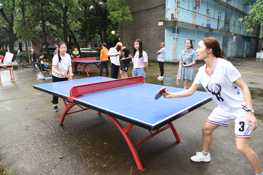 赛场上,运动员进行了拔河、篮球、羽毛球、乒乓球、绑腿齐步跑5个项目的比赛。