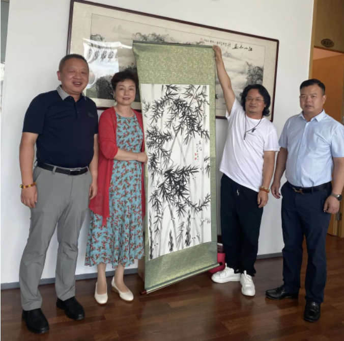 陈知君老师长于阳新,对家乡怀有浓厚的乡情,现场画就《春竹》图赠予武汉市阳新商会同乡,愿大家百尺竿头更进一步,虚心劲节努力向上。