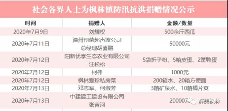 7月14日上午,商会会长一行来冒雨赶赴到阳新经济开发区防汛指挥部,捐赠矿泉水、猪肉、蛋类等物质,慰问一线防汛工作人员及受灾群众。而在7月13号商会副会长张吉河得知家乡受灾,慷慨解囊捐赠阳新县枫林镇政府两万元用于防洪抗灾。