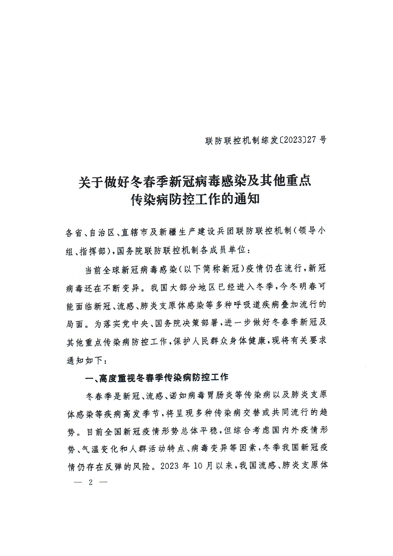 关于转发国务院联防联控机制综合组《关于做好冬春季新冠病毒感染及其他重点传染病防控 ...